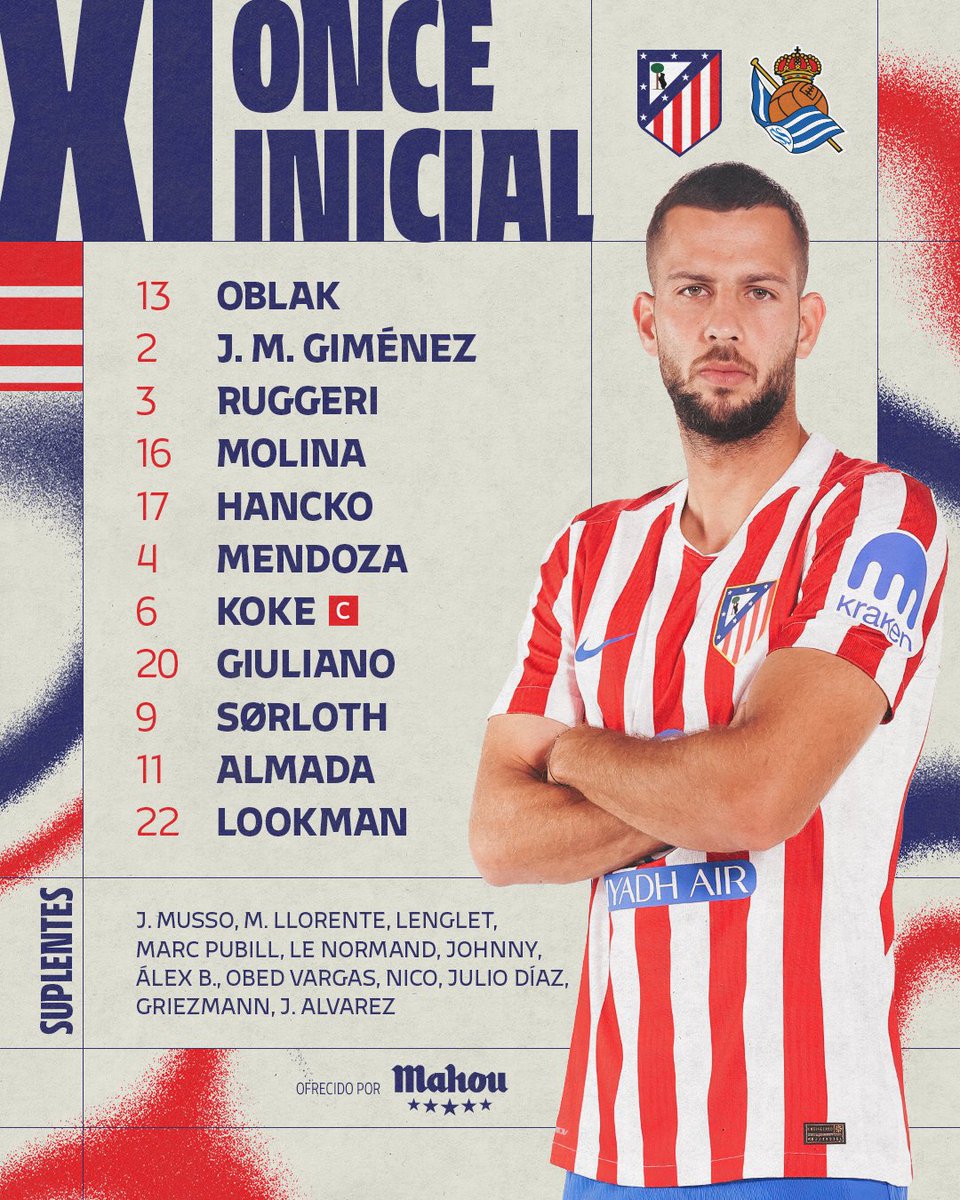 ⏱ 54' | Atleti 1-1 Real Sociedad 🔄 Entran Julián, Grizi y Nico por Giuliano, Almada y Lookman